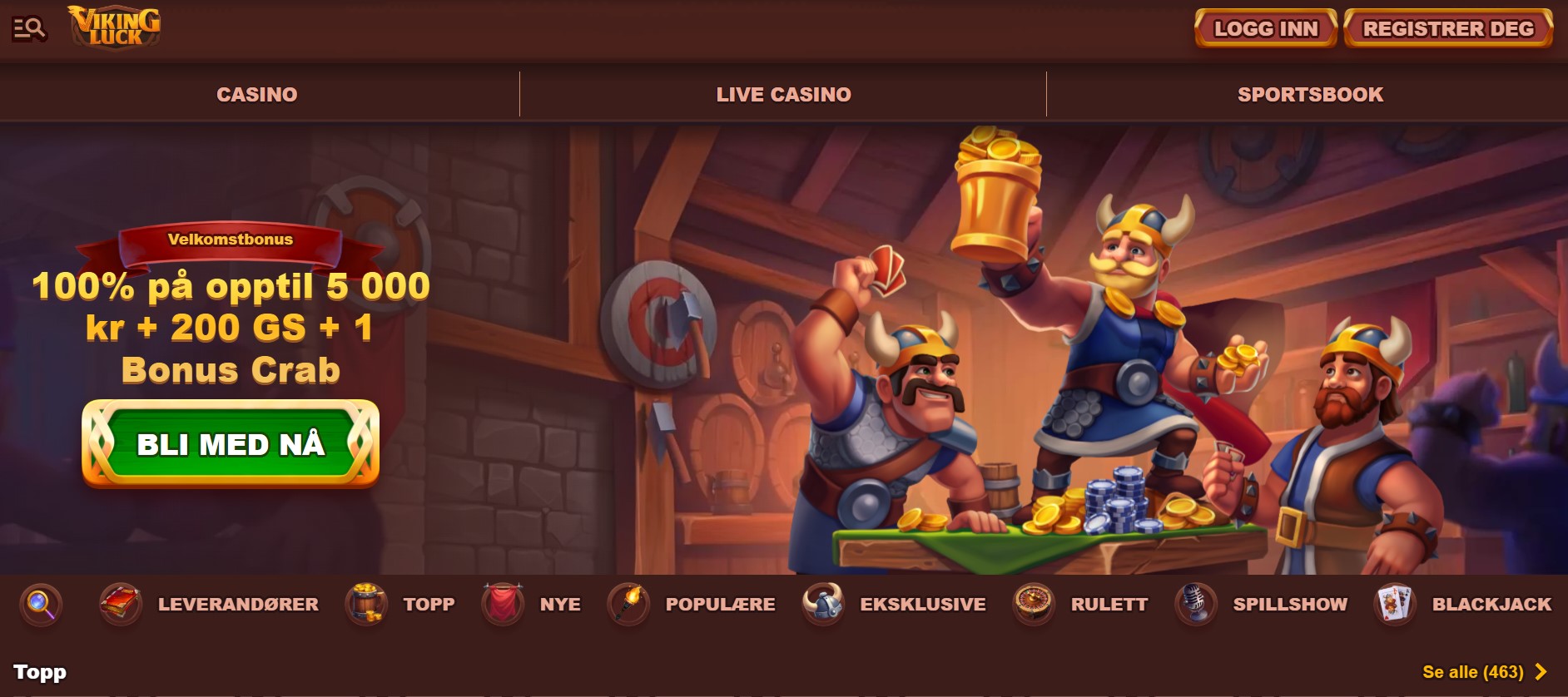Vil du legge ut på et episk kasinotokt? VikingLuck byr på et solid viking-/norrønt tema som ikke prøver å blende deg med støy. Siden åpner til en mørk, ryddig lobby der spillgrafikken får snakke for seg. Navnene er tydelige, flisene store, og søkefeltet forstår halvskrevne titler. Med to sveip finner du noe som passer humøret. Opplevelsen føles laget for korte, jevnlige økter – ikke et «én gang i året»-besøk.